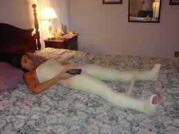 gambar ats ni aku download je aw..bukan aku ! hahaha mentang pakai body casts kan, sluruh tubuh kena simen..hahaha tp actually first month ritu lbh kuang mcm ni jgk ah..